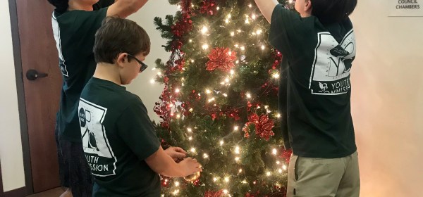 OLMOS PARK YOUTH COMMISSION HELPED WITH CHRISTMAS TREE DECORATING AT CITY HALL MONDAY, NOVEMBER 26 Olmos Park Youth Commission turned out to help their city